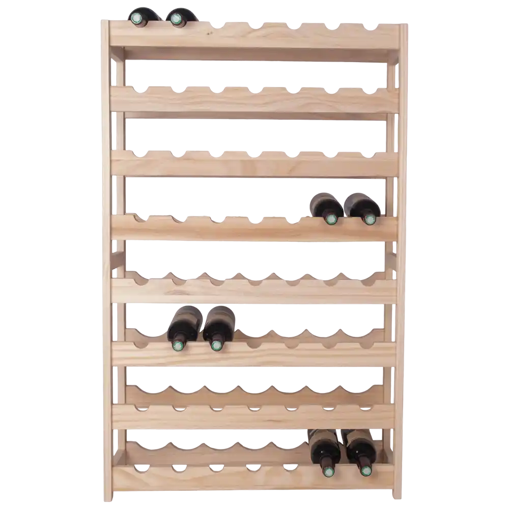 Stockez 56 bouteilles en toute sécurité avec le casier à vin Cava en pin non traité, qui présente un design élégant et modulaire, idéal pour agrandir les collections.