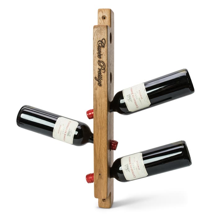 Présentez votre vin avec élégance grâce à cette étagère murale en chêne massif, conçue pour accueillir 5 bouteilles de manière élégante et peu encombrante.